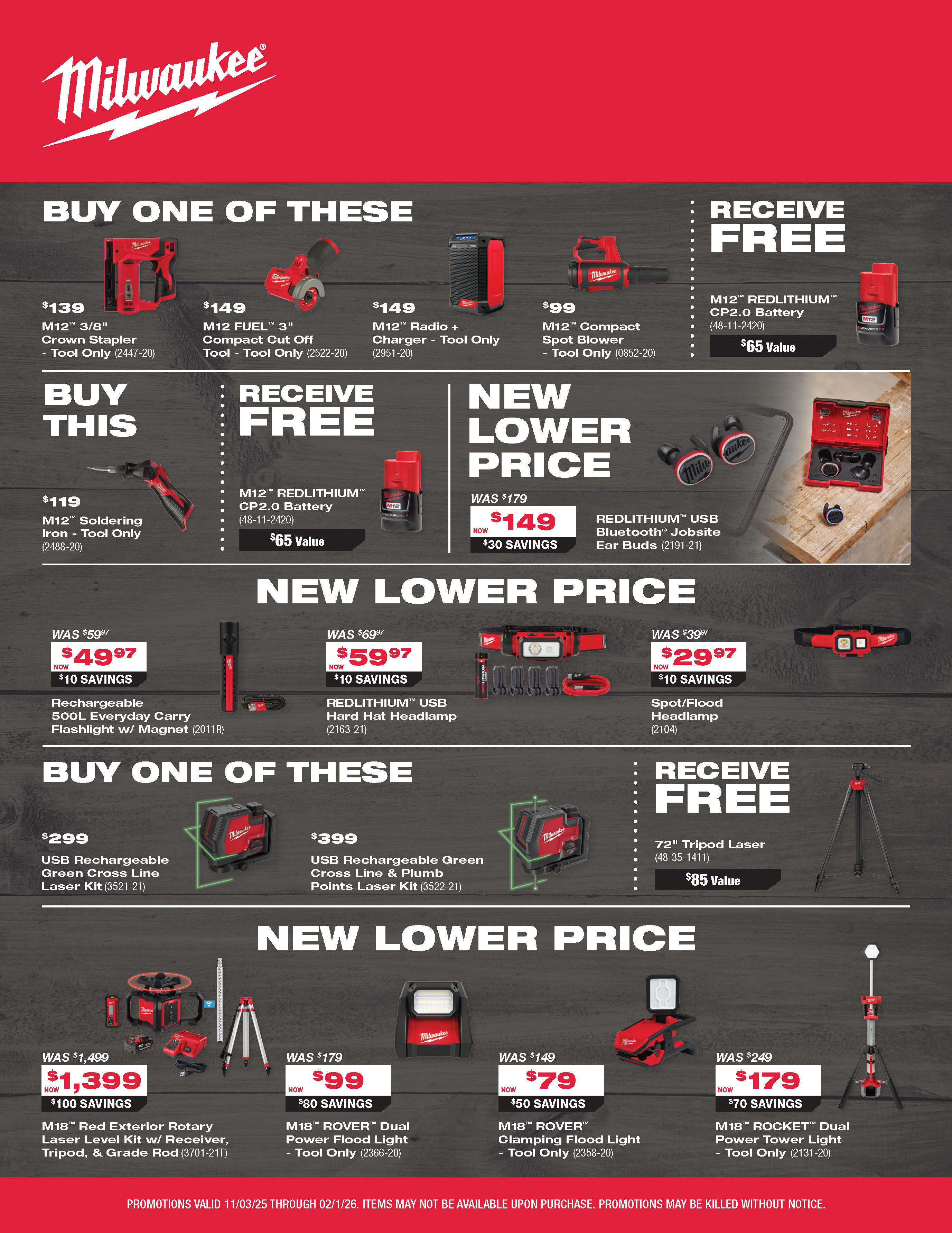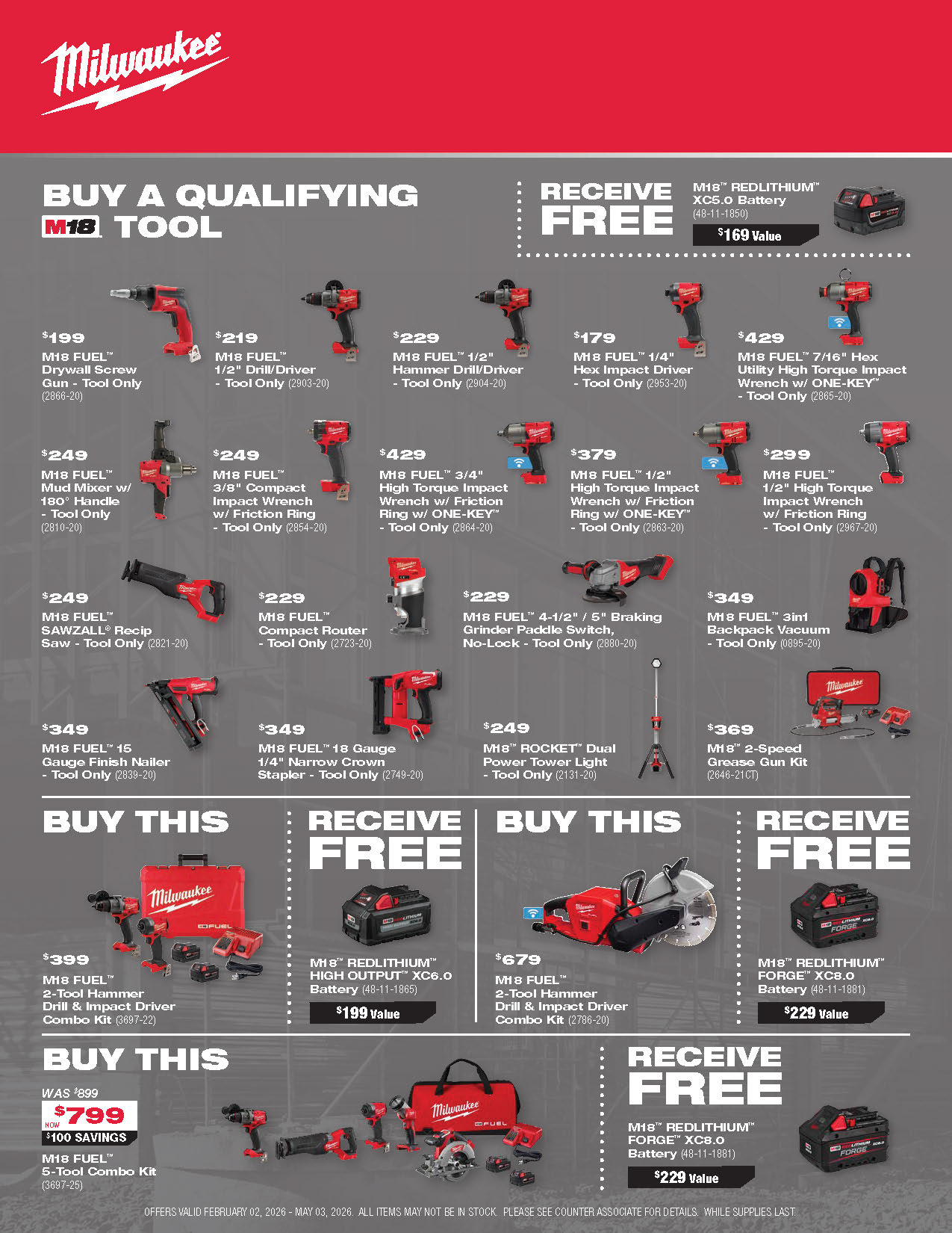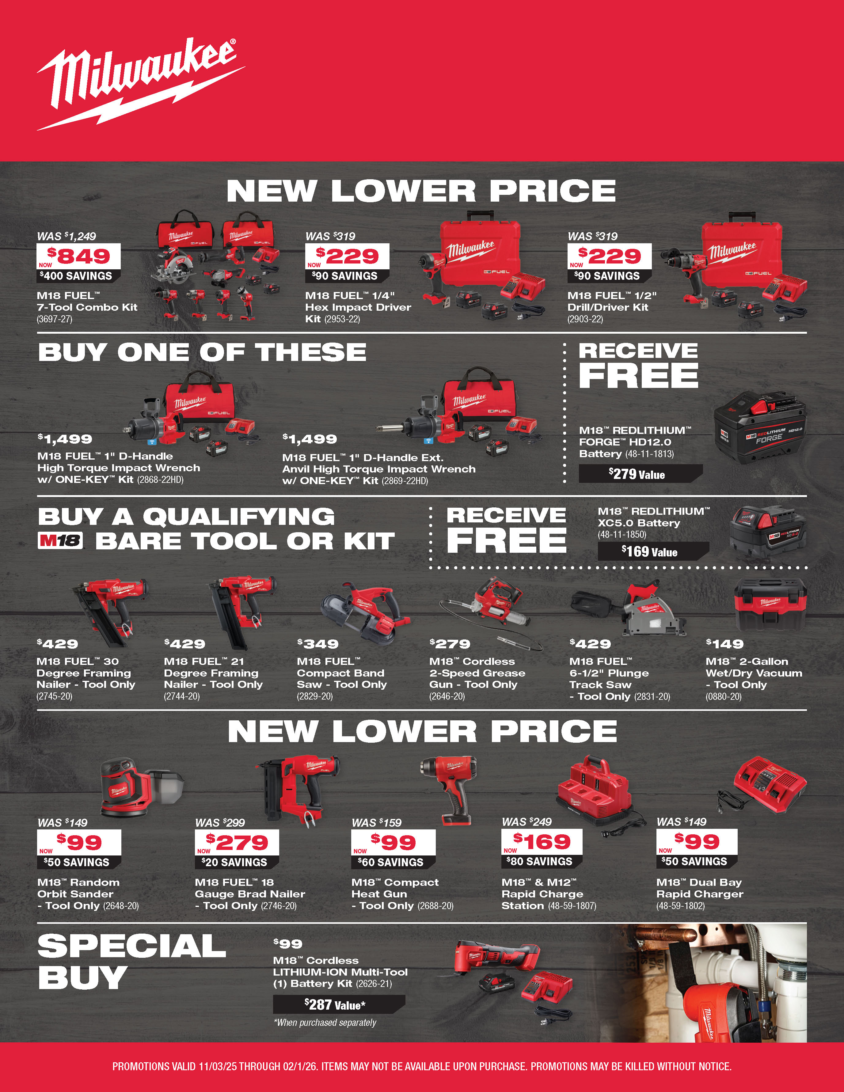 Milwaukee promotions are valid only while supplies last and are subject to change without notice.