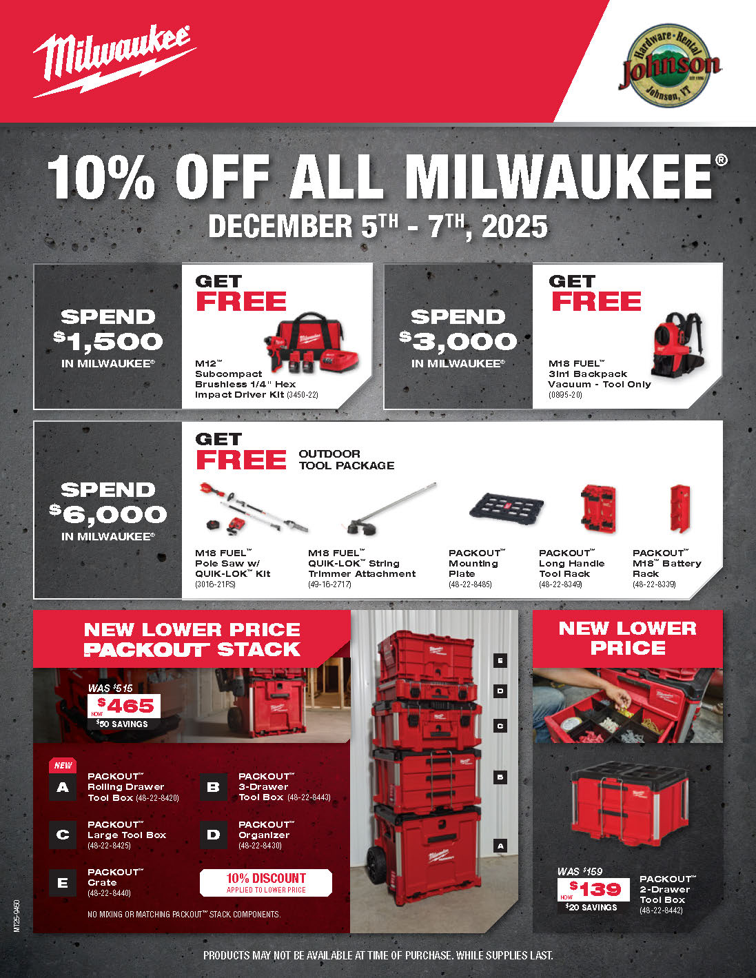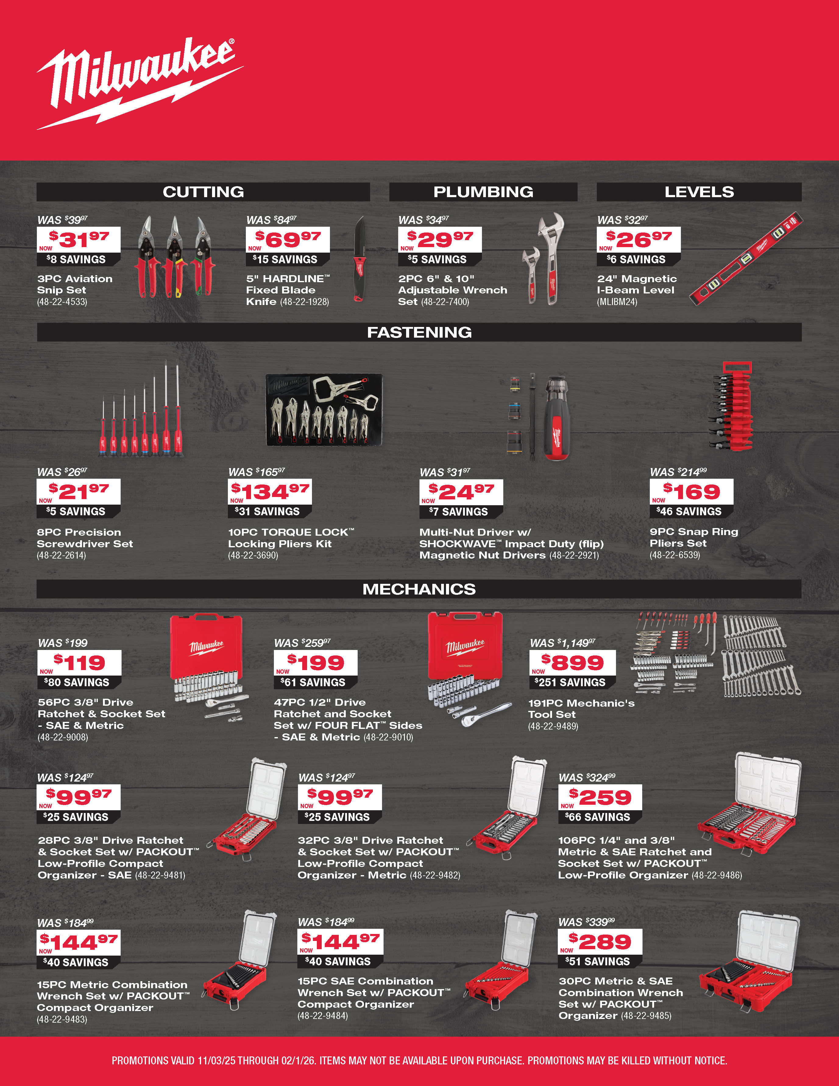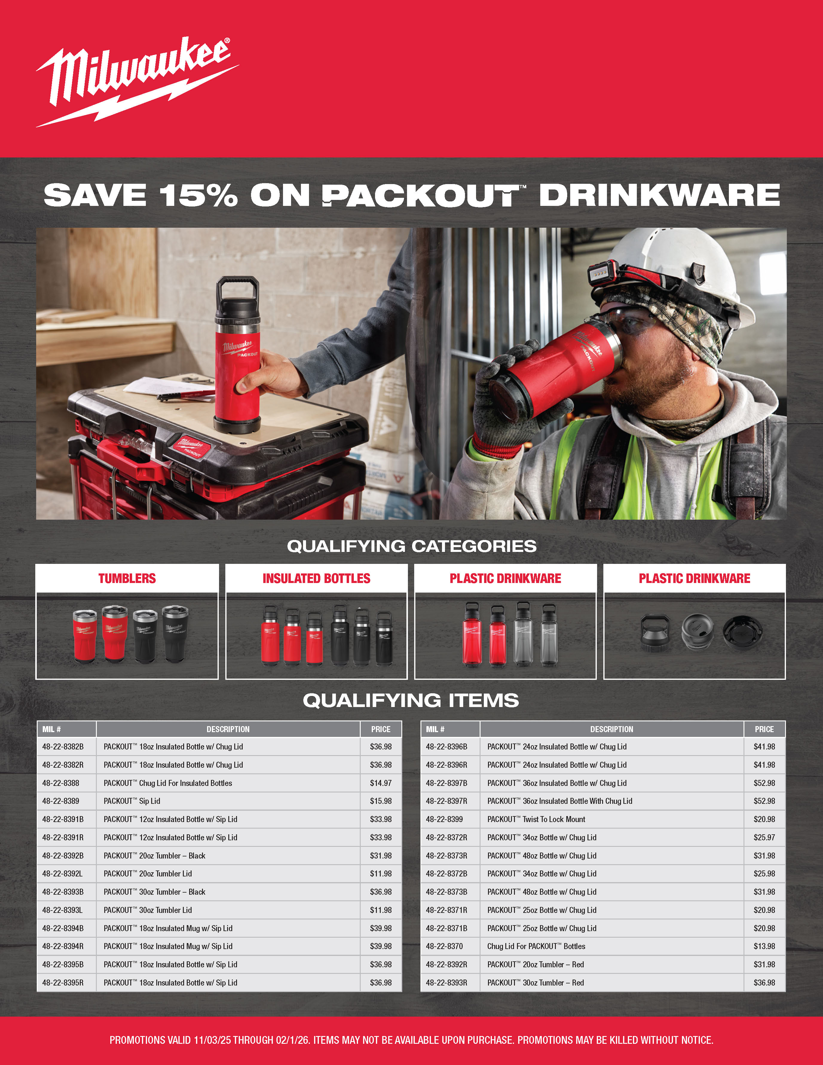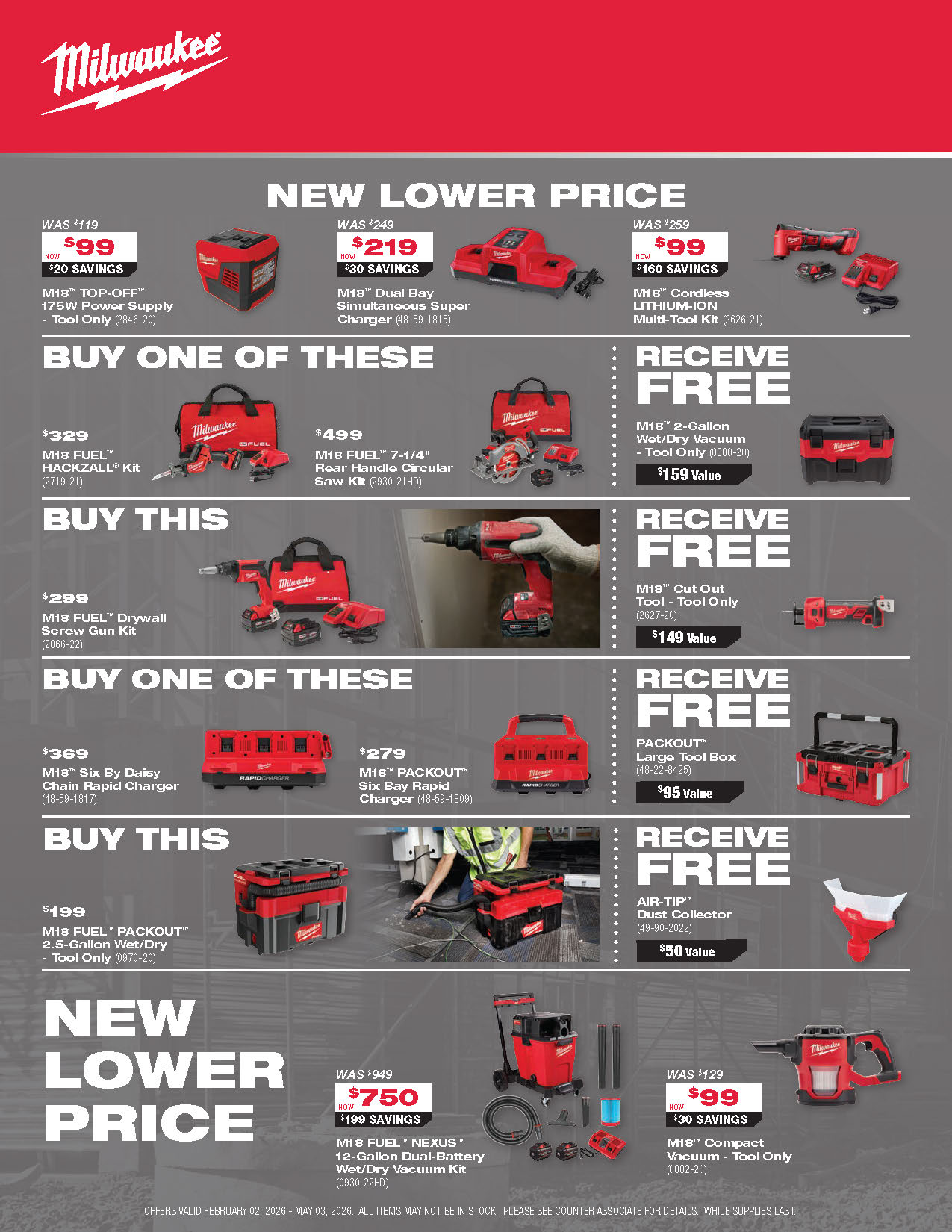 Milwaukee promotions are valid only while supplies last and are subject to change without notice.